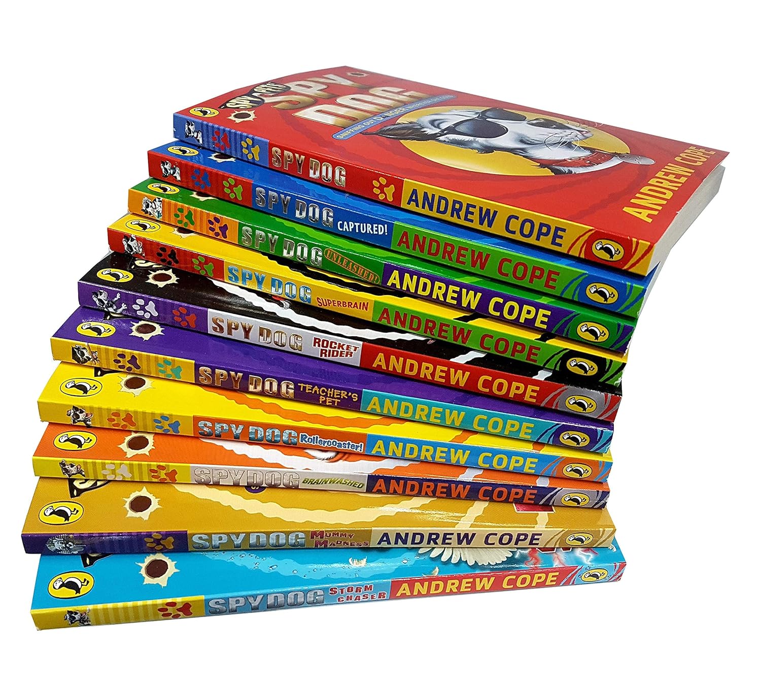 She drives cars. She’s a PlayStation champ. She’s got a black belt in karate. She’s AGENT GM451 (or LARA to you Licensed Assault and Rescue Animal). A gang of villainous head teachers are plotting to make their school the very best. They’re creating a secret formula, and the final ingredient is the brain of a child. They’ll stop at nothing (even BANNING playtime) to get what they want. Can anyone stop their dastardly plot? Canine super spy Lara sniffs out her most dangerous mission, yet when adventure comes calling, what’s a Spy Dog supposed to do? Spy 007, It’s time to meet a Spy Dog – the first of her kind! Agent’s GM451 or LARA or Licensed Assault and Rescue Animal or that pesky mutt Distinguishing Black and white mongrel, appears ordinary when working undercover, one black ear sticks up and the other flops down over one eye. Whistling, computer skills, unarmed combat, five languages, PlayStation grandmaster and many others . . . The Secret Service Villains, injustice and crime Current Escape an evil drug baron, go undercover, await retrieval by the Secret Service and try not to get too fond of the family she has chosen to look after her. Roller Ben wins a competition to name a new rollercoaster, the Cook family head off to Enchanted Towers for the grand opening. LARA (that’s Licensed Assault and Rescue Animal to you) and her pups Spud and Star are looking forward to water rides, ghost trains – and candy floss. At the park, Princess Pretty and her Troll Prince join the Cooks to welcome pop-star Summer Rayne to open the new ride. But a pickpocket is on the loose and Lara is determined to catch the thief before the grand opening. It’s time to buckle-up for a hair-raising.